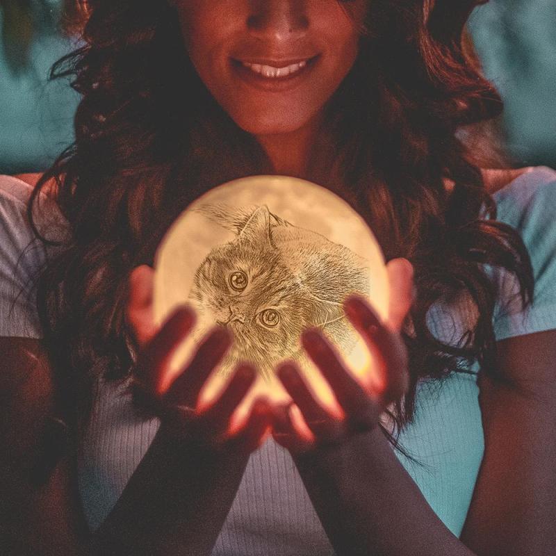 Mondlampe Mit 3d-fotogravur Für Tierliebhaber