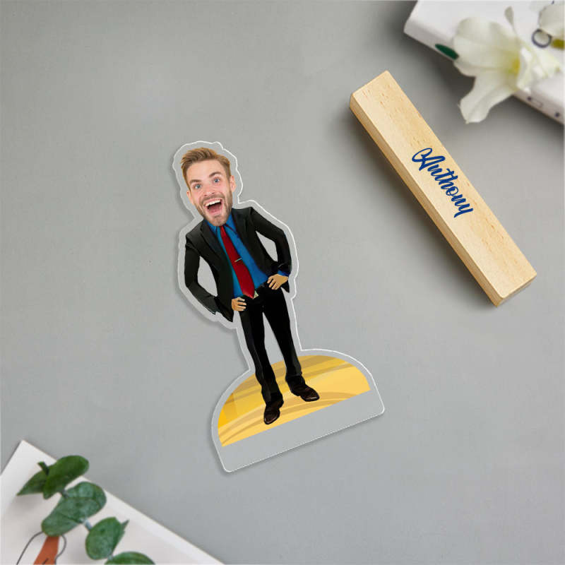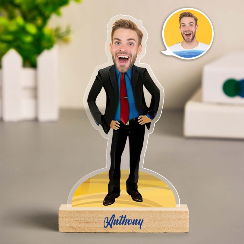 Personalisierte Gentleman-Karikatur-Dekoration, Benutzerdefiniertes Gesicht, Minime-Plakette, Geschenk Für Ihn