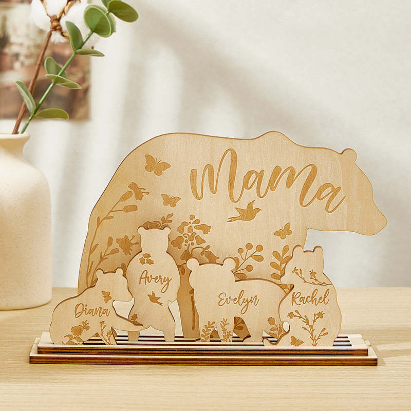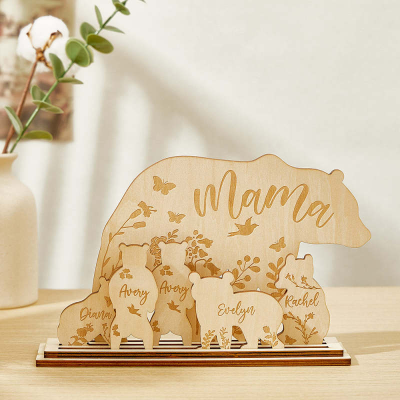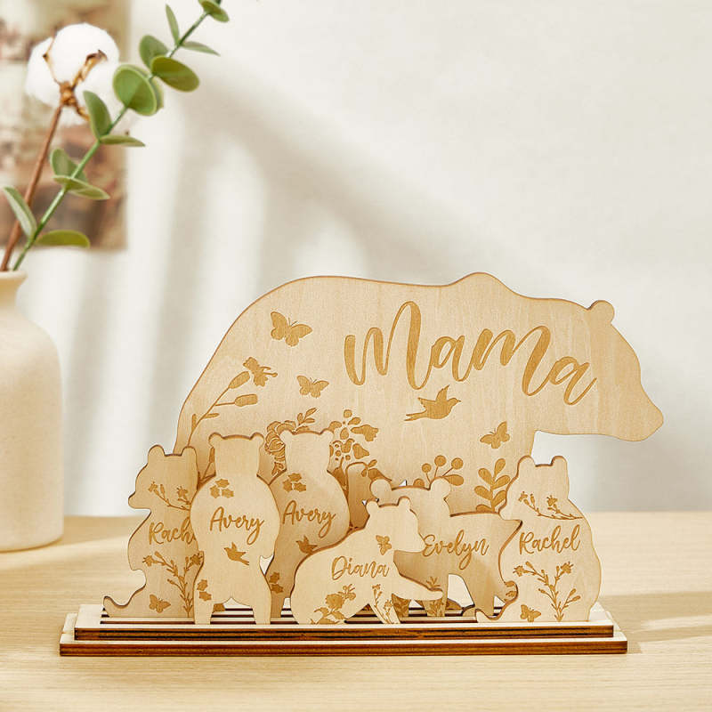 Personalisierter Mama Bär Mit Jungtieren, Holz-schreibtischdekoration, Geschenk Für Mama