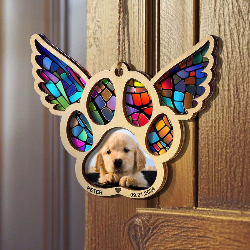 Personalisiertes Haustier-sonnenfänger-ornament Mit Foto, Pfotenabdruck-ornament, Erinnerungsgeschenk Für Haustierliebhaber