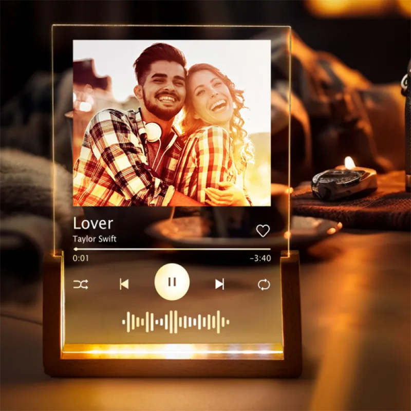 Personalisierte Foto-Song-Plakette aus Acryl, Individuelle Musik Plakette, Nachtlicht Lampe mit Musikcode, Jubiläumsgeschenk