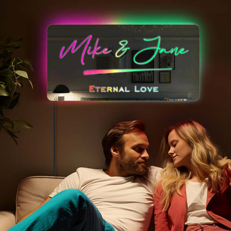 Benutzerdefinierter Name, Spiegelschild, Individueller Text, Led, Mehrfarbig, Leuchtende Wandbehang-neonschilder, Heimdekoration, Geschenk Für Paare