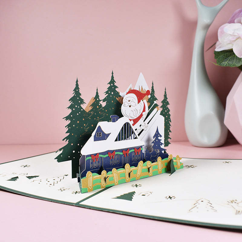 Santa Skier 3d Pop-up-karte Grußkarte