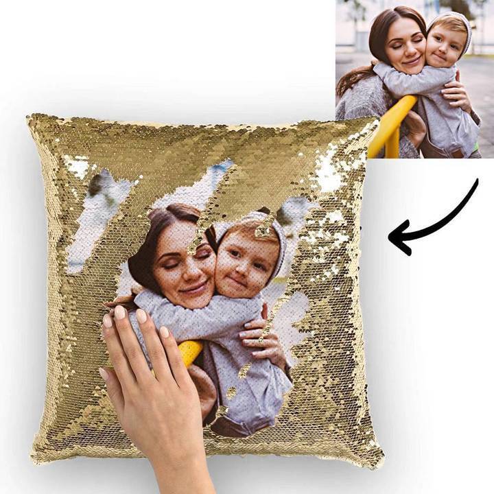 Valentinstag Geschenke Personalisierte Foto Pailletten Kissen Volldruck Wendekissen Jubiläumsgeschenk 15,75 "x 15,75"