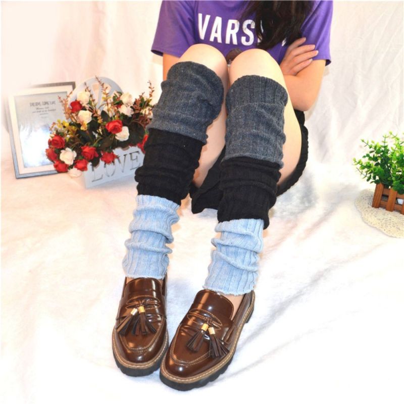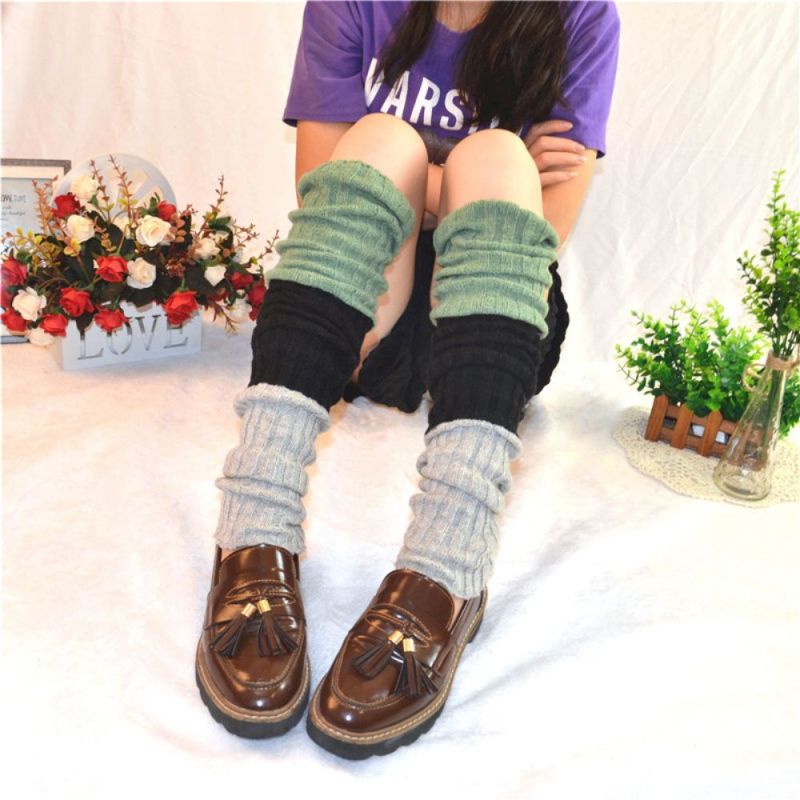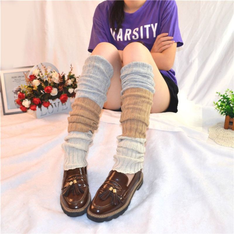 Winter Wolle Overknee Socken Socken Set Kontrastfarbe Damen Wolle Bein Set Verlängerte Gestrickte Hohe Socken